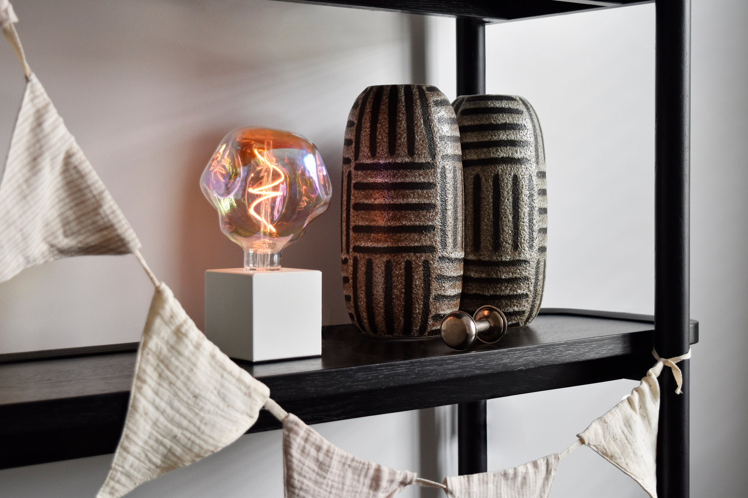 Het kleinere broertje van de Organic Evo. Een kleinere splash-vorm met een gekruld led filament. De natuurlijke afwerking van het glas geeft deze lamp een serene uitstraling.