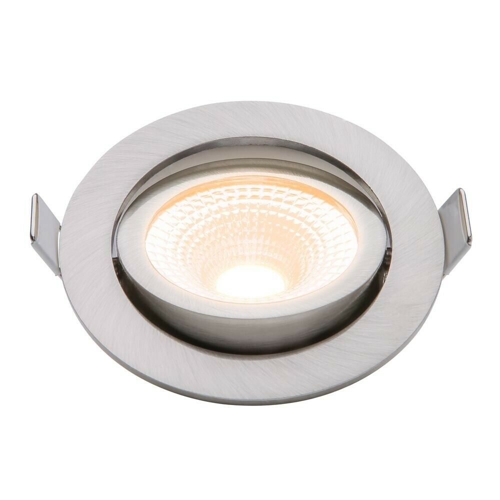 Deze geborstelde ronde led inbouwspot is spatwaterdicht (IP54, geschikt voor badkamer) en een kleine inbouwdiepte van slechts 23mm. Uniek is de uitstekende dimbaarheid en het eenvoudige 2-draads doorlussen dankzij de compacte lasdoos met dubbele klemconnector (2x fase- en 2x nuldraad). Bijzonder is de lichtkleur ‘dim to warm’. Hiermee wordt de lichtkleur ‘warmer’ naarmate u dimt, namelijk van 3000K-2000K.