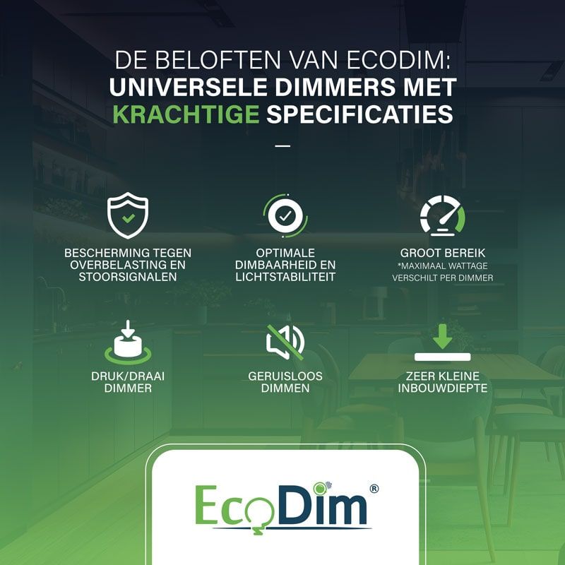 Tevens geschikt voor alle led lampen werkend op fase afsnijding (RC/trailing edge). Dit is ongeveer 90% van alle led lampen in NL & BE.