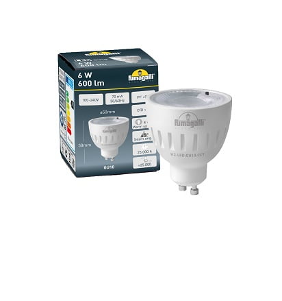 Deze Fumagalli GU10 LED Spot CCT 6W, verbruikt slechts 6W. Hierdoor is de LED spot met energielabel F enorm zuinig a 25000 branduren.