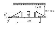 De inbouwspot heeft een diameter van 99 mm en een boorgat van 75mm