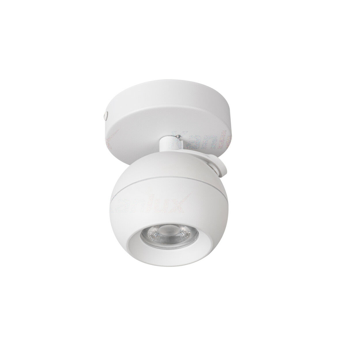 De Kanlux Galoba EL-10 is een moderne, opbouw spotlamp met één lichtpunt, uitgevoerd in mat wit aluminium. Dankzij het compacte ronde ontwerp en de verstelbare kop is deze lamp ideaal voor gerichte verlichting in woonruimtes zoals de woonkamer, keuken, slaapkamer of eetkamer. De lamp werkt op 220–240V en wordt bediend via een wandschakelaar.
