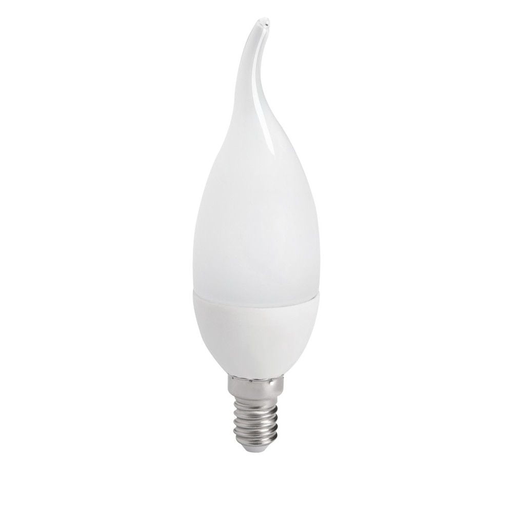 De lamp heeft een C37-vorm met een subtiel gebogen punt en een opale afwerking die het licht gelijkmatig verspreidt. Dankzij de standaard E14-fitting is de lamp eenvoudig te plaatsen in bestaande armaturen. De kunststof behuizing maakt de lamp licht en duurzaam, terwijl de lange levensduur van circa 20.000 branduren zorgt voor langdurig gebruik zonder veel onderhoud.