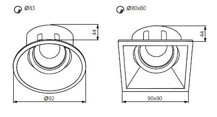 De inbouwspot heeft een diameter van 92 mm en een boorgat van 83mm