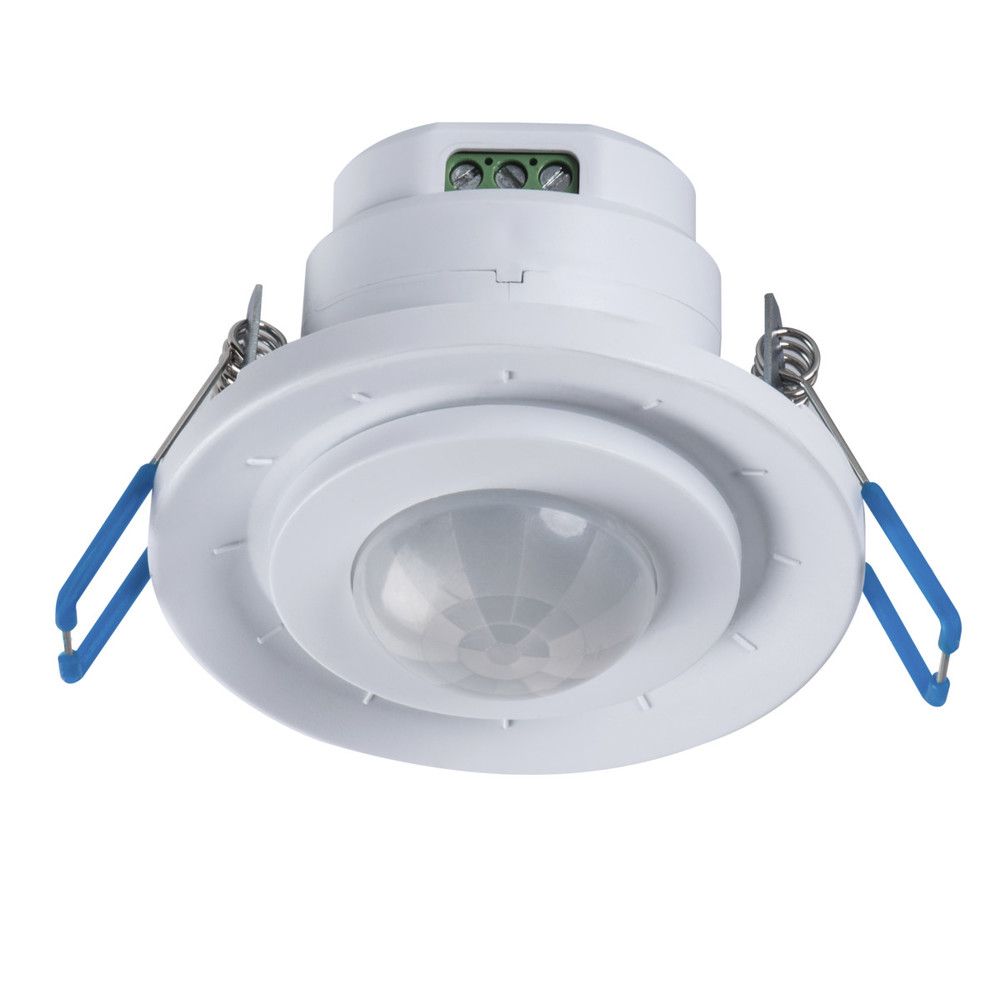 Het armatuur is uitgevoerd in wit kunststof en heeft een diameter van 80 mm en een hoogte van 90 mm. Met een IP20-beschermingsgraad is de sensor geschikt voor droge binnenruimtes zoals gangen, trappenhuizen of kantoren. De inbouwmontage zorgt voor een nette afwerking in het plafond, terwijl de beschermingsklasse II extra veiligheid biedt bij installatie.