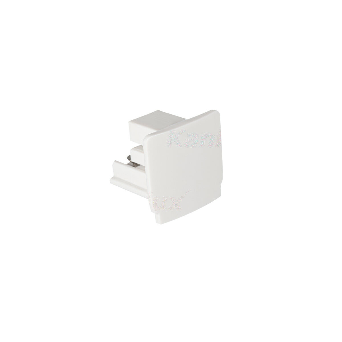 Het Kanlux eindkapje voor 3-fase trackrails sluit de rail netjes af en beschermt de contacten. Gemaakt van wit kunststof met afmetingen van 31 × 32 mm, passend bij standaard 3-fase verlichtingssystemen.