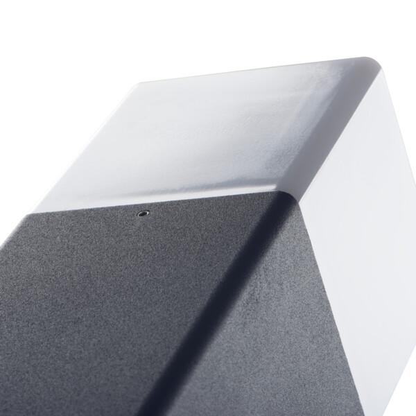 Het armatuur is gemaakt van aluminium met een matte grijze afwerking, wat zorgt voor een duurzame en onderhoudsvriendelijke buitenverlichting. De fitting is E27, waardoor je eenvoudig een lichtbron naar keuze kunt plaatsen (maximaal 11 W, niet inbegrepen). De lamp is te bedienen via een wandschakelaar of wanddimmer, zodat je de lichtintensiteit kunt aanpassen aan de gewenste sfeer.