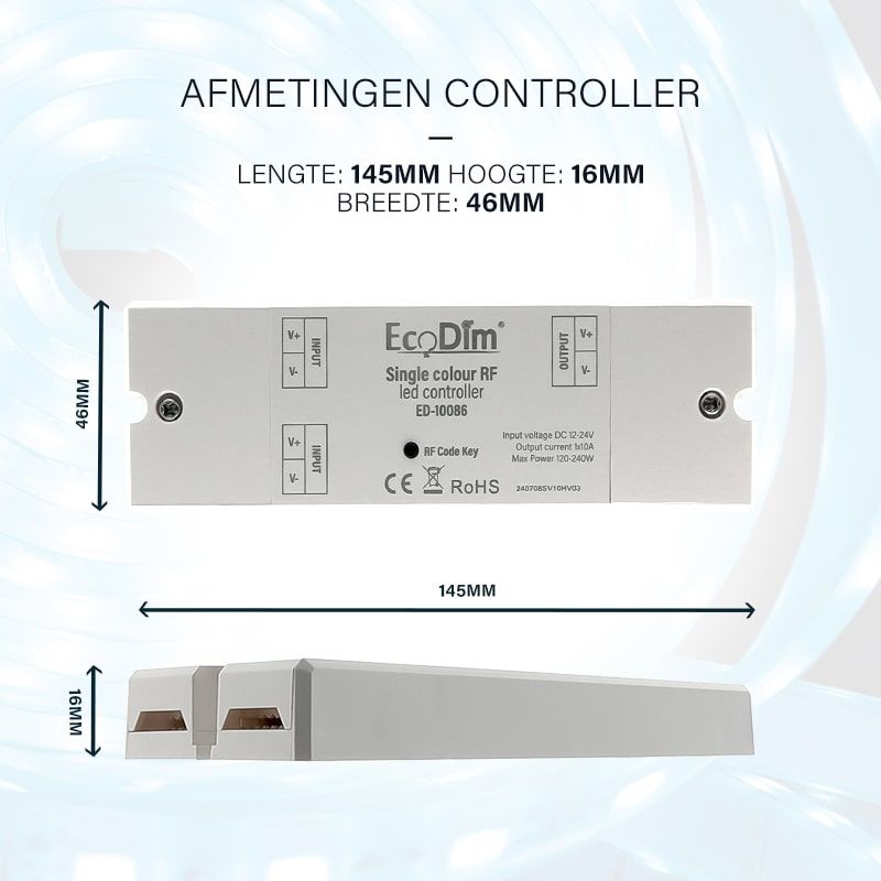 Deze LED Strip Afstandsbediening Set uitermate geschikt wanneer jij jouw enkelkleurige led strips wilt dimmen met een afstandsbediening. Zowel met SMD led strips als deย COB led strips zijn uitstekend te dimmen en bedienen met deze controller + afstandsbediening. Deze led controller werkt ook i.c.m. 12V led strips.