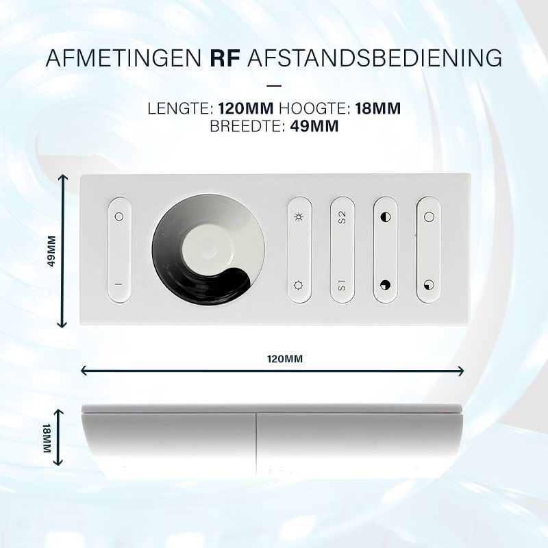 Deze LED Strip Afstandsbediening Set met controller is uitermate geschikt voor 12V en 24V DC LED strips. In de complete set vind je een led controller en een infrarood afstandsbediening. Met deze complete set heb je de mogelijkheid om een led strip alleen met een afstandsbediening te bedienen. Via de afstandsbediening kun je de led strip aan/uitzetten en dimmen.