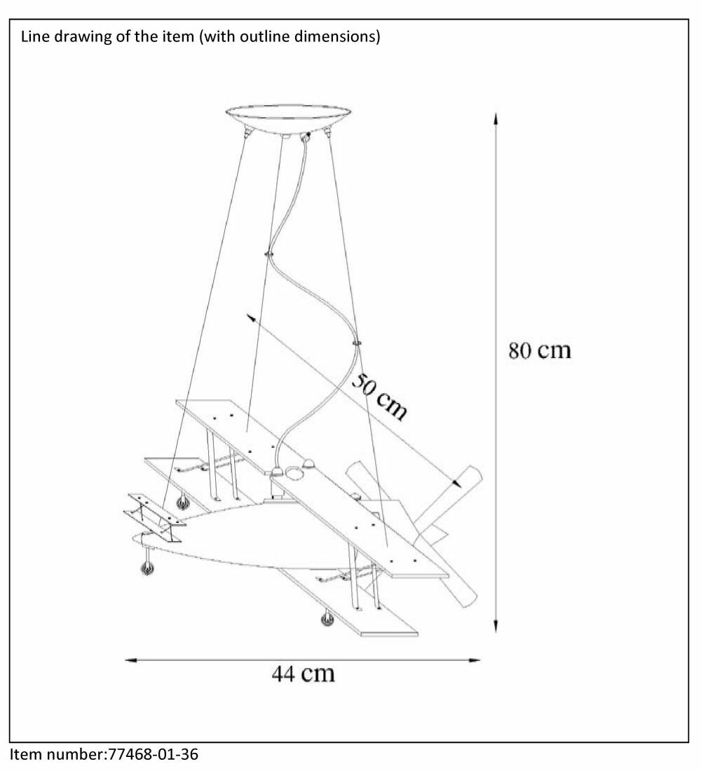 De droom van iedere jongen…een Fokker vliegtuig aan zijn plafond hangen! Met een maximale hoogte van 100cm en een breedte van 50cm zal de Fokker pendel het pronkstuk van zijn kamer zijn! De E14 fitting zorgt ervoor dat u voor energiebesparende lampen kunt kiezen.