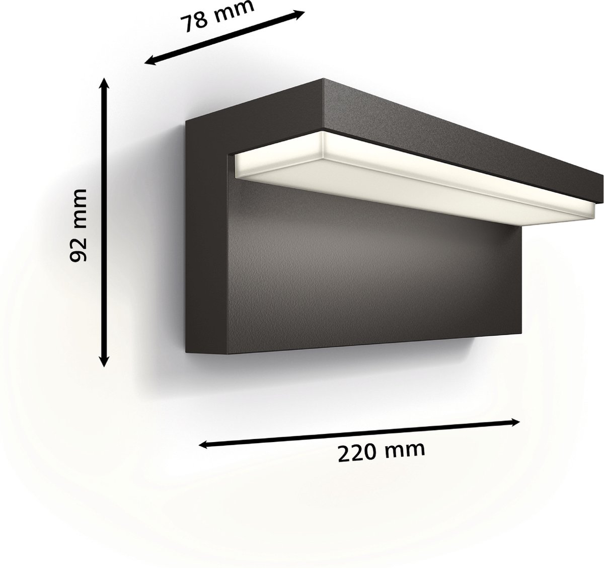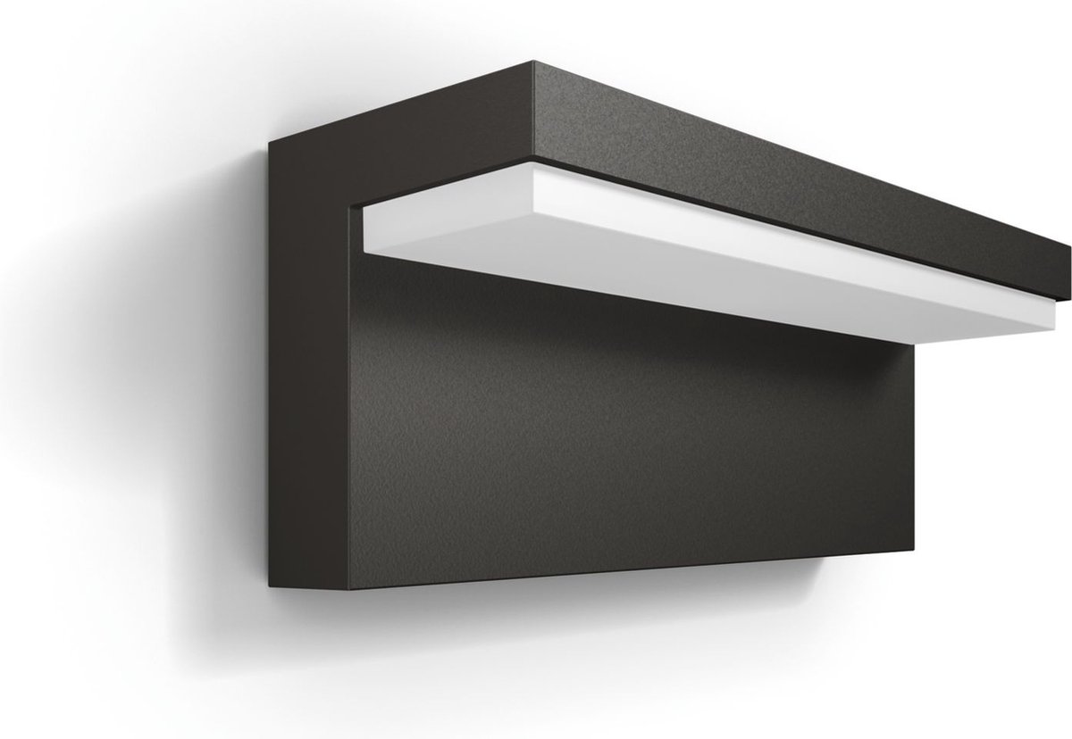 Philips Bustan Wandlamp Antraciet buitenlamp maakt gebruik van baanbrekende nieuwe technologie om meer energie dan ooit te besparen en materiaalverspilling tegen te gaan. Met een verbazingwekkende levensduur van 50.000 uur gaan deze lampen meer dan twee keer langer mee dan standaard LED-buitenlampen van Philips
