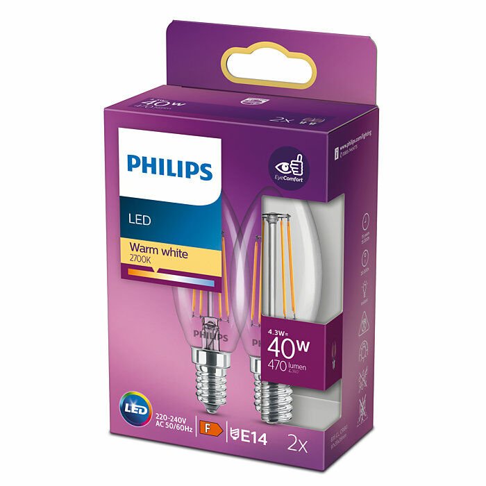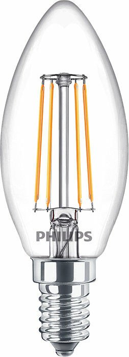 Deze Philips E14 kaarslamp verbruikt slechts 4.3W, maar geeft het licht van een halogene lamp van 40W. Hierdoor is de LED kaars met energielabel A++ enorm zuinig én gaat deze extra lang mee á 15000 branduren!