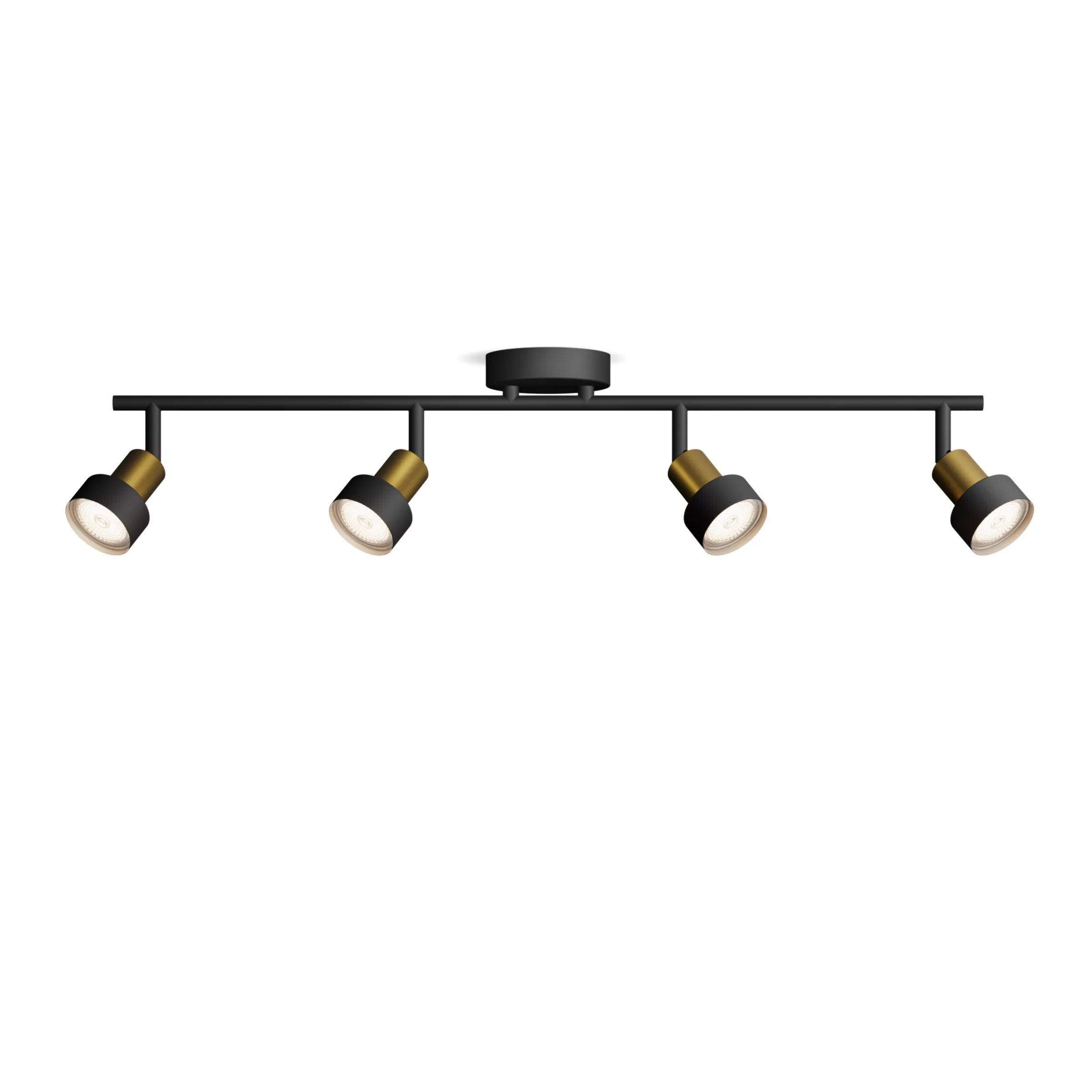 De Philips CONDUIT Plafondspot 4 Lichts Rond heeft een elegant, praktisch en trendy ontwerp. De combinatie van goud en zwart brengt een elegante touch aan in je kamer zonder uitbundig te worden. Deze spots zijn ideaal om bepaalde elementen in de kamer extra uit te lichten.