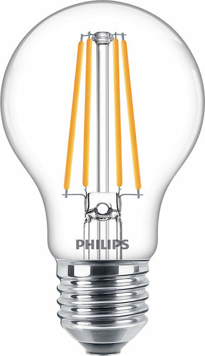 Vervang uw oude lamp met een nieuwe energiezuinige Philips LED-lamp, met warmwit licht. Deze standaardlamp verbruikt circa 80% minder energie dan traditionele lampen dankzij de nieuwste energiezuinige LED-technologie en ze gaan tien keer langer mee. Met EyeComfort, voor licht dat aangenaam is voor uw ogen. Deze lamp heeft een E27-fitting, en past dus in de meeste lampen met grote fitting.