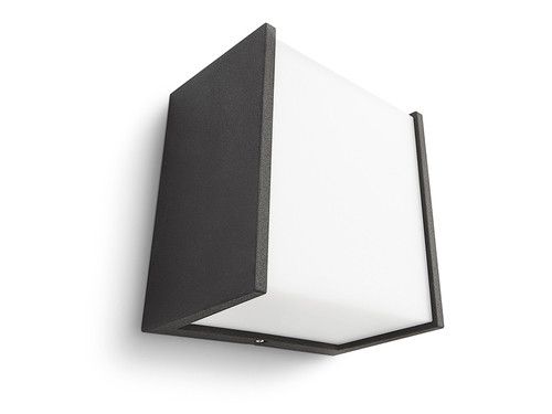 De Philips MyGarden Macaw wandlamp is een moderne buitenlamp van zwart metaal met geรฏntegreerde 3W LED-lichtbron (2700K). De lamp meet 85ร85ร130 mm, is spatwaterdicht (IP44) en geschikt voor wandmontage.
