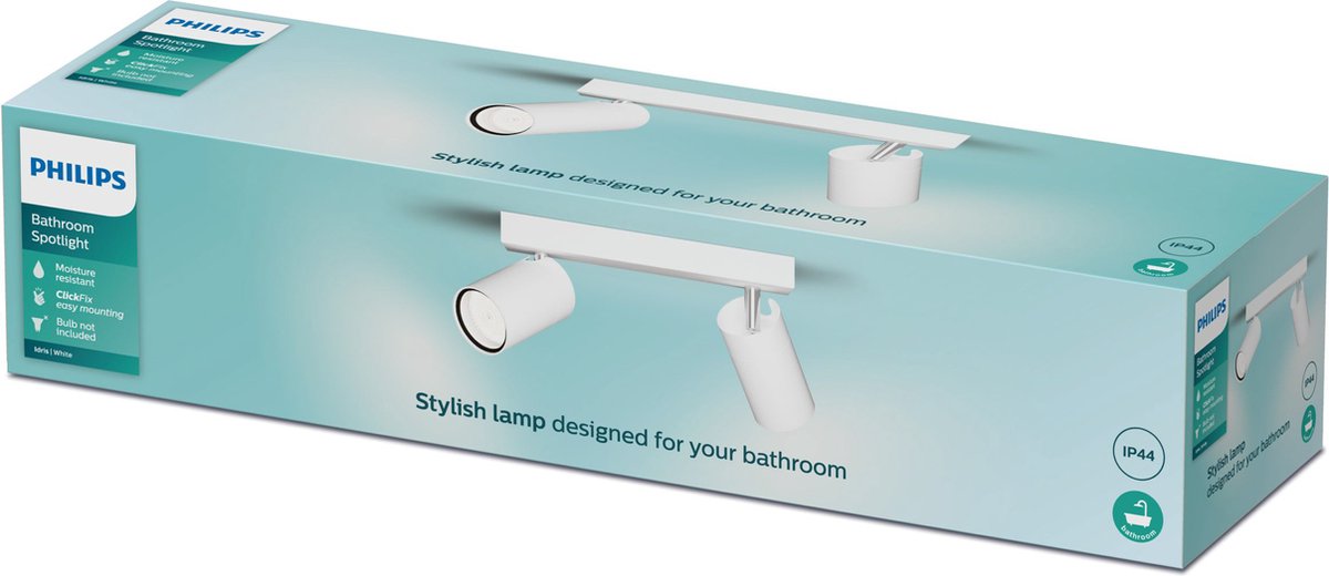 Doordat de Philips Plafondspot 2 Lichts Badkamer Wit IDRIS lamp spatwaterdicht is, werkt hij ook in vochtige omgevingen, zoals je badkamer. Je hoeft je dus geen zorgen te maken dat de lampen stuk gaan of kortsluiting geven na een stomende douchebeurt.