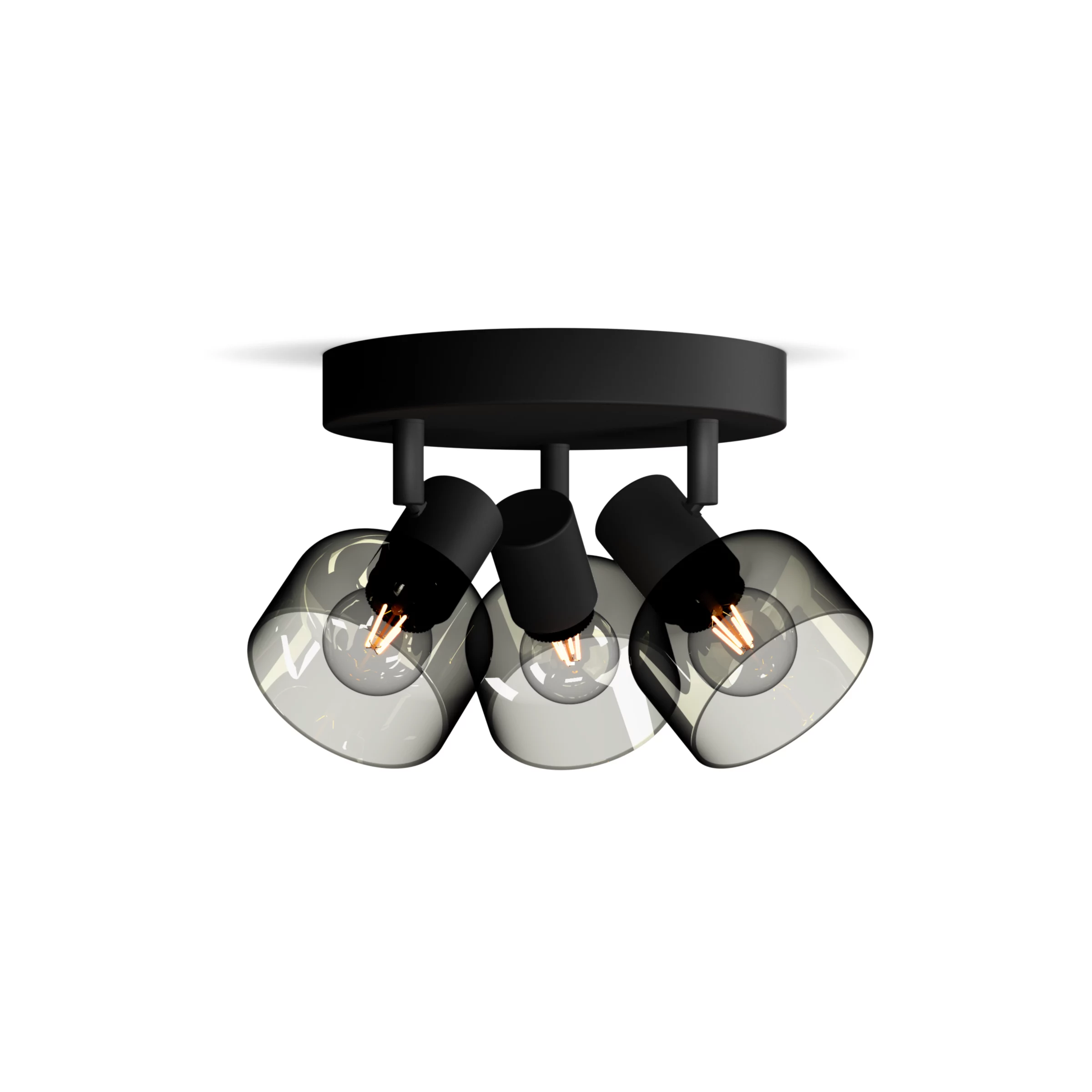 De Philips SLEET Plafondspot 3 Lichts Rond Zwart combineert een strak, minimalistisch zwart design met gerookt glas voor een uniek decoratief lichteffect. Je kan zelf de lampen alle kanten op richten