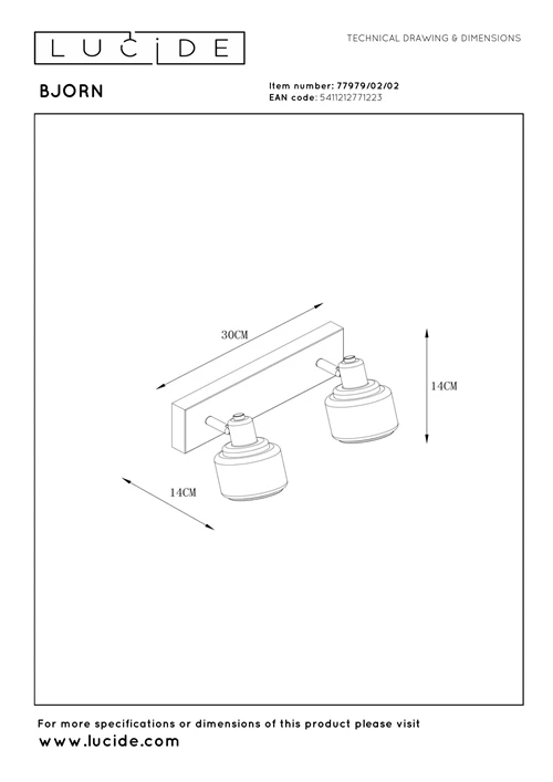- Fitting: 2x E14, maximaal 40 W per lamp