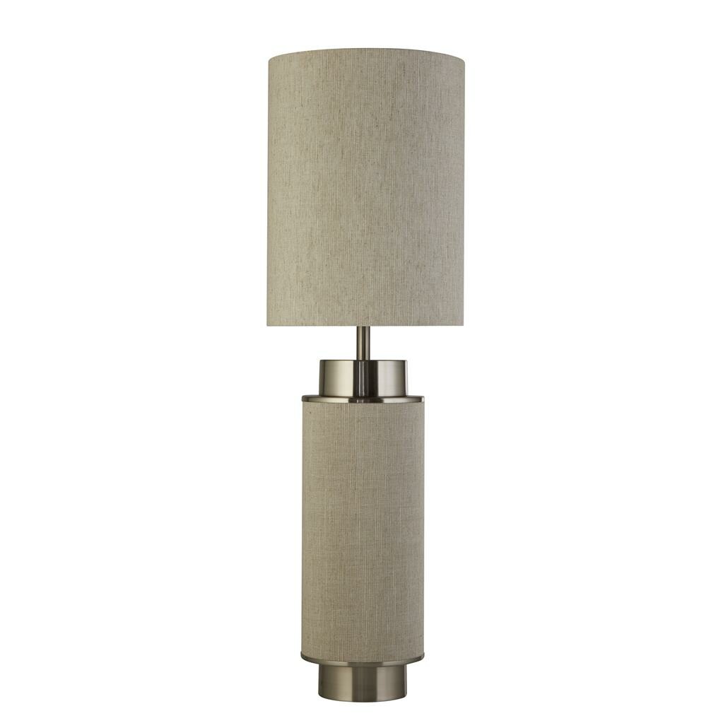 FLASK 1LT TABLE LAMP, NATURAL HESSIAN WITH SATIN NICKEL AND NATURAL SHADE |