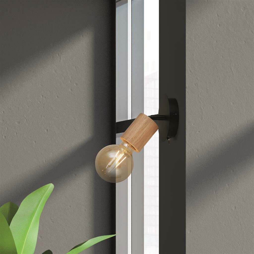 Deze LED Wandlamp met enkele spot is een eenvoudige manier om elke kamer een extra look te geven. Door zijn eigentijdse zwarte en houten kleurstelling, kan de SPINNY Wandlamp aan het plafond of aan de muur worden gebruikt.