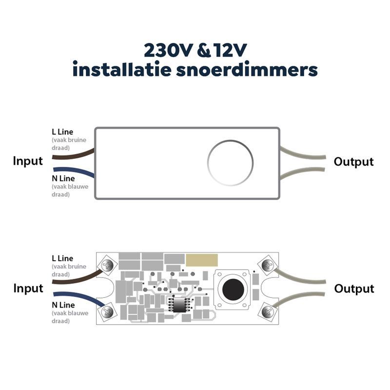 Snoerdimmer met draaiknop รฉn zowel MIN als MAX afstelling. Hiermee kun je dus de beste dimbaarheid uit iedere led lamp halen. Daarnaast kun je gewoon de welbekende druk/draaiknop gebruiken (i.p.v. pulsdrukker). Veel gebruiksvriendelijker te bedienen!