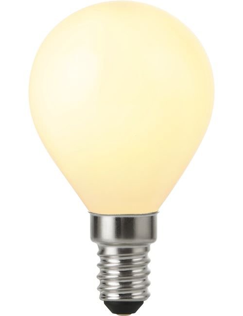 De SPL E14 Fila Kogellamp 4W Extra warmwit Opaal Dimbaar heeft een extra warmwitte lichtkleur van 2500K hierdoor word deze lichtbron gebruikt als sfeermaker maar ook als functioneel licht terwijl hij toch een iets warmer licht geeft, de led lichtbron heeft een lichtopbrengst van 310 lumen en maar een verbruik van 4W waardoor de lichtbron een lumen per watt verhouding heeft van 78LM/W.