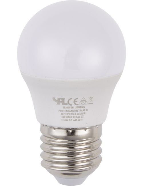 Deze SPL E27 kogellamp verbruikt slechts 3W, maar geeft het licht van een halogene lamp van 25W. Hierdoor is de LED Kogel met energielabel A+ enorm zuinig 25000 branduren!