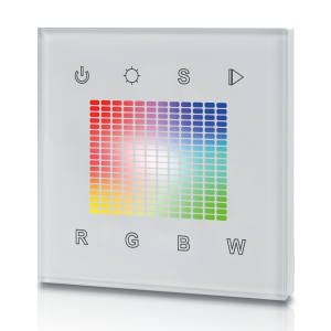 Het wandpaneel heeft een strak, modern ontwerp met een glazen afwerking die past in uiteenlopende interieurs. De aanraakgevoelige kleurzone biedt directe controle over de gewenste lichtkleur, terwijl aparte toetsen zorgen voor aan/uit, moduskeuze en witlichtregeling. Geschikt voor vaste montage aan de muur in binnenruimtes.
