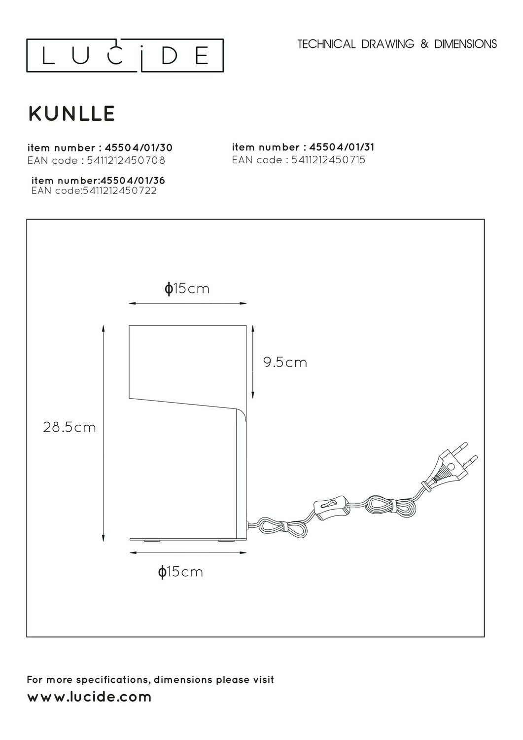 De Lucide KNULLE tafellamp is een moderne metalen lamp in matzwart met een ronde kap van Ø15 cm. Geschikt voor één E14‑lichtbron (max. 40 W, 220‑240 V), hoogte 28,5 cm, lichtbron niet inbegrepen.