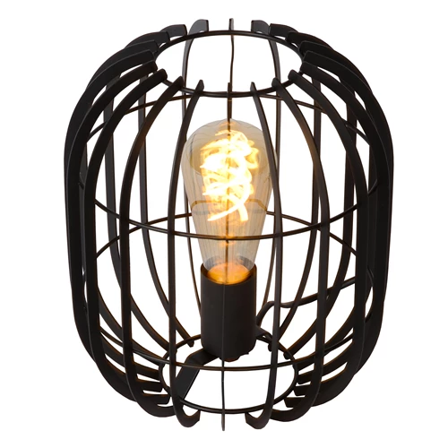 De Lucide REDA tafellamp combineert een moderne vormgeving met een industriële uitstraling. De open metalen kooi in matzwarte afwerking laat het licht rondom vrij schijnen, waardoor een sfeervol effect ontstaat. Dankzij het compacte formaat van 22 x 22 x 26 cm past deze lamp moeiteloos op een dressoir, bureau of nachtkastje.