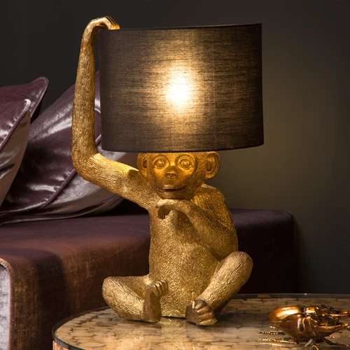Retro tafellamp met gouden aapfiguur