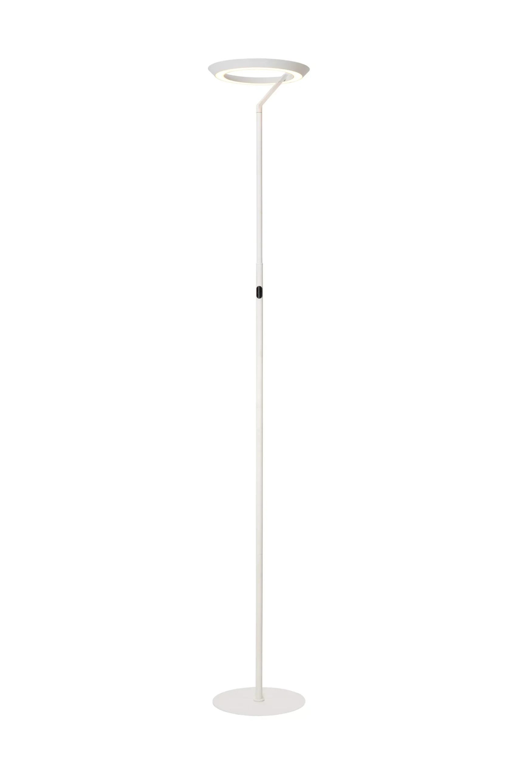 De Vloerlamp Ring Wit CELESTE is niet in 1 woord samen te vatten: stijlvol, minimalistisch, tijdloos en een beetje buitenaards. Met haar subtiele hoogte van 174 centimeter stel je deze staande lamp uit hoogwaardig metaal comfortabel op elke plek in huis. De ronde, compacte lampenkap met een diameter van 28 centimeter heeft iets weg van een klein ruimteschip en straalt zowel naar boven als beneden. Bovendien pas je de lichtsterkte eenvoudigweg aan via de touchsensor op de standaard. Met Celeste in huis beland je zo in hogere sferen. Verken het universum.