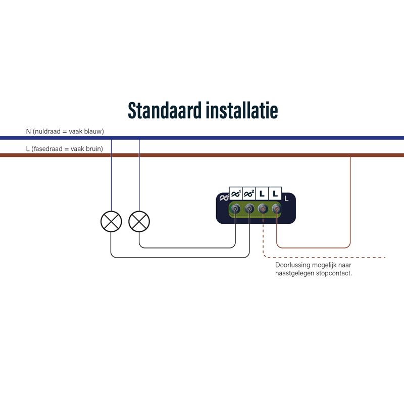 Meer informatie over de installatie van deze duo led dimmer 230V vind je in de meegeleverde installatiehandleiding en bij bovenstaand tabblad โInstallatieโ.