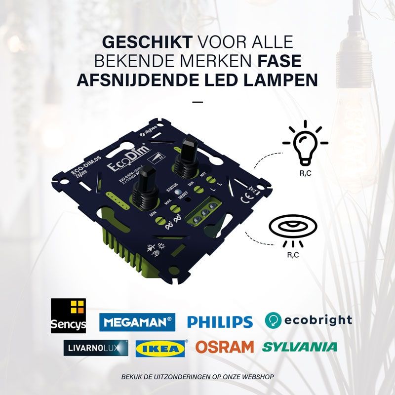 Deze EcoDim.05ย Zigbee led duo dimmer inbouwย is geschikt voor:
